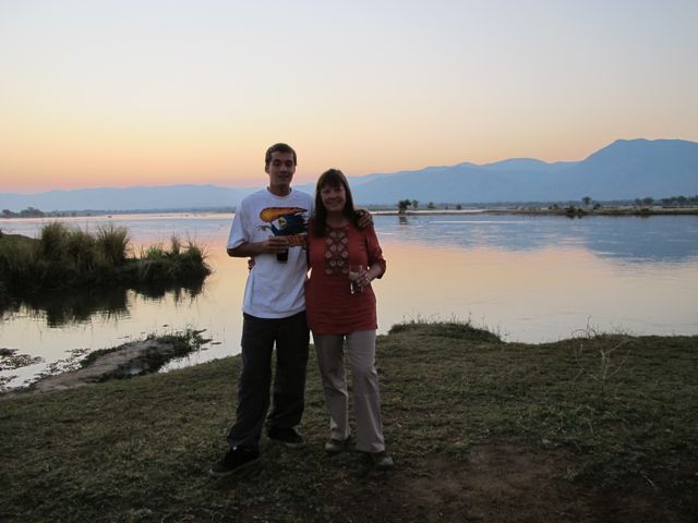 Mana Pools to Victoria Falls –July 3, 2011. Our wake up knock is not until 7:00 A.M; we dress and pack quickly and sit by the morning camp fire enjoying our final mugs of coffee along the Mana Canoe Trail. Last night, three tip envelops were placed on our camp cots and I give one each to our guides, Matthew and Henry, thanking them profusely for their part in our experience. I give the third envelope to Carlie who will distribute the amount between the 5 support crew members. The support crew is busily breaking down camp, even as we finish our breakfast. After breakfast, we take a morning game walk from our campsite, following the single file protocol and see the usual impala, wart hogs and water buck, grazing in the early morning light. An hour later, Carlie intersects our walking route, picks us up in the safari vehicle, reuniting us with our luggage and takes us to the bush airstrip to wait for our plane. It is no surprise to see an elephant grazing on the runway and Carlie roars the engine, establishing our dominance, and the elephant spins towards us, flaps its ears and makes a backwards retreat into the hide of trees. The other four guests are also flying out, but to a different destination and we wait together, in the still morning heat, alongside, the red dirt airstrip. Their small aircraft arrives first and we listen hopefully for another plane. Ours eventually arrives, but an hour late with a father and son already on board, having just come from Richimuchi. We are squeezed into the tiny plane, take off land to refuel at Kariba, take off land again at______, finally arriving at the Victoria Falls airport at 2:30 P.M.